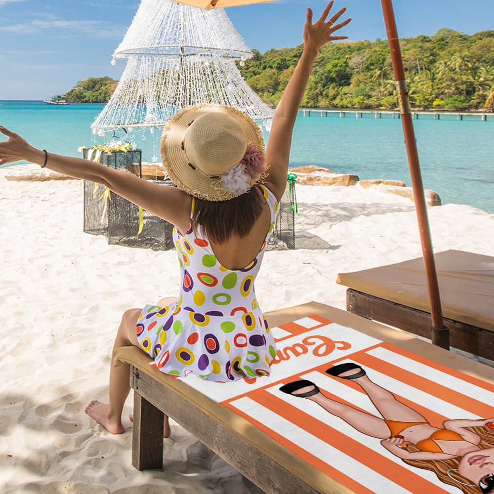 Personalized Fashion Cartoon Character Stripe Beach Towel, Quick Dry Microfiber Bath Towel, Vacation/Beach/Pool Party Favor, Gift for Women/Girls
