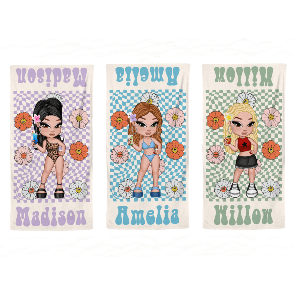 Personalized Touch - This beach towel is personalized with your name and a fun, fashion cartoon character design, making it a unique accessory. It adds a playful touch while reflecting your personality.