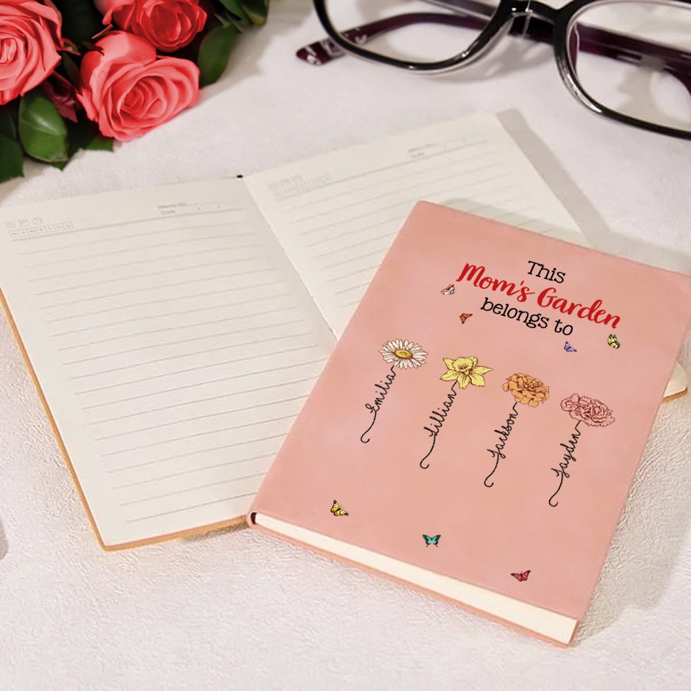 Elegant Floral Design - This personalized notebook showcases a charming "Grandma's/Mom's Garden" theme adorned with delicate birth flowers. Its artistic cover brings a touch of sophistication and timeless beauty, making it a stylish addition to any desk or personal collection.