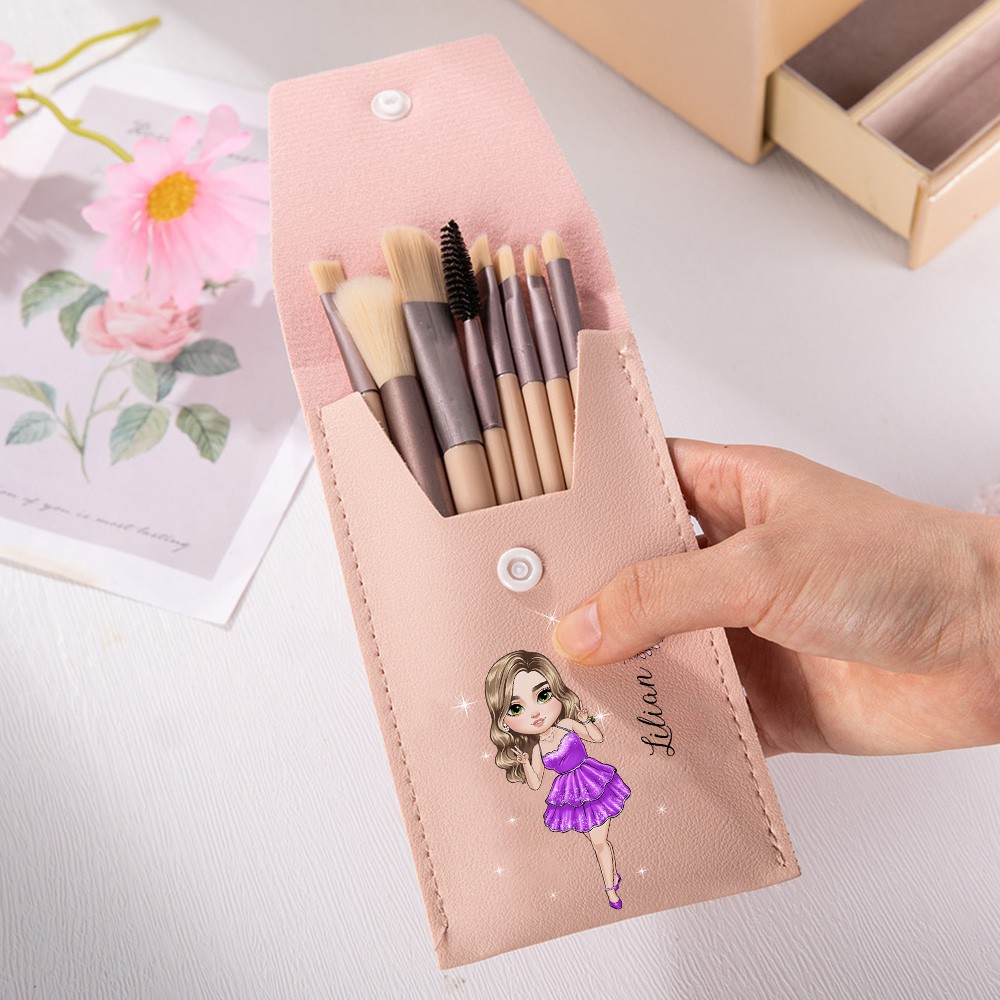 | Style | Personalized Prom Queen Makeup Brush Bag with 8 Pcs Brushes |